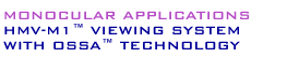 Wearing the HMV-M1 (Head Mounted Viewer � Monocular), soldiers can view mission critical information while maintaining their natural vision of the immediate surroundings. The HMV-M1 increases situational awareness without compromising safety or security. In addition to being daylight readable, the display can also be used for nighttime viewing. The HMV-M1 emits extremely low light thereby minimizing the chance of detection due to illumination.